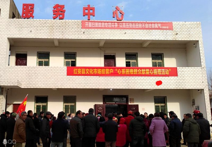 2018年12月29日上午,由县文新广局、县文化市场综合执法大队组织的"红安县文化市场经营户情系困难群众献爱心捐赠活动"在七里坪镇石家咀村举行。县委宣传部、七里坪镇万千工作总队长等同志参加活动。