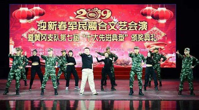 春节前夕,由武警黄冈支队、黄冈市文化新闻出版广电局、湖北省黄梅戏剧院、中国银行黄冈分行主办,黄冈市群众艺术馆承办,黄冈艺术学校、黄冈市博物馆、黄冈市图书馆协办的2019迎新春军民融合文艺会演暨武警黄冈支队第七届“十大先进典型”颁奖典礼在黄梅戏大剧院举行。