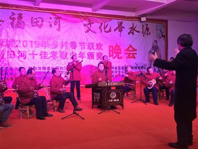 1月30日,麻城市福田河镇党委政府、麻城市各文化场馆、各乡镇文化站和部分企业、学校、文艺协会、社会文艺团队,共同在湖北省民间文化艺术之乡福田河镇举办麻城市首届乡村春晚。镇委、镇政府现场为该镇“十佳孝敬少年”颁奖,农民满怀丰收喜悦,成为春晚的主角。