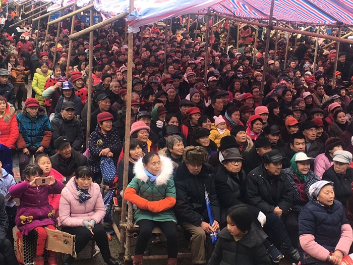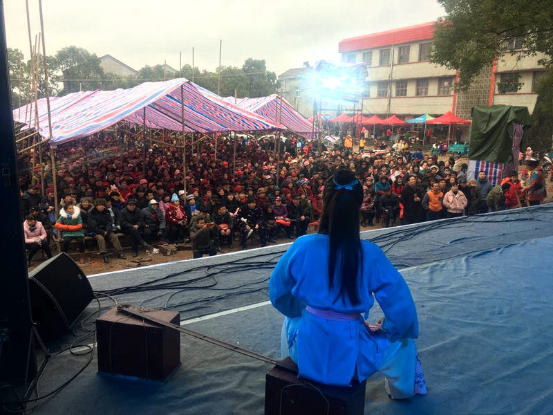 连日来,春寒风疾雨骤。田宝村两委班子发动群众克服困难搭起了可以容纳二千余人的防雨棚使村民看戏不淋雨。正月初九日晚七时,春雨正酣,观众翘首期待的张辉原创精品黄梅戏《东坡》如期演出。风声雨声锣鼓声,台上台下黄梅情。艺术家张辉的精彩表演,唱醉了一窝戏迷,而戏迷们的热情又温暖了台上演员的身心。幕间空隙,台下群众自发组织的威风锣鼓震天响,喜庆的礼爆冲天放。似乎要把雨点冲走把寒冷驱光。此情此景,让我们感受到了年味戏味醇香馥郁 ,物阜民丰河清海晏的盛世景象。党的十八大以来,院党委团结一致、带领全院演职员工以党的十九大报告精神为引领,以习近平在文艺工作座谈会重要讲活为行动指南,坚持以人民为中心的创作导向,创作及恢复精品剧目大小计30余台本。并连续六年在农历正月演出黄金时段送戏下乡。