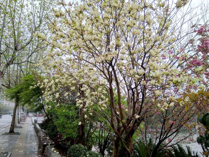 木兰花是一种奇特的花卉。很多花都是先长叶子后开花,而小的木兰树是只长叶不开花,长大的木兰树则是在开完花之后,再长出嫩绿的叶子。每逢农历二月初,乍暖还寒时节,满枝桠开出或素净、或艳丽硕大的花朵,那份绚丽令人神往。