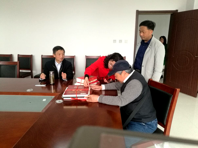 岳西县图书馆一行正在翻阅红安县图书馆赠予的红色地方文献。