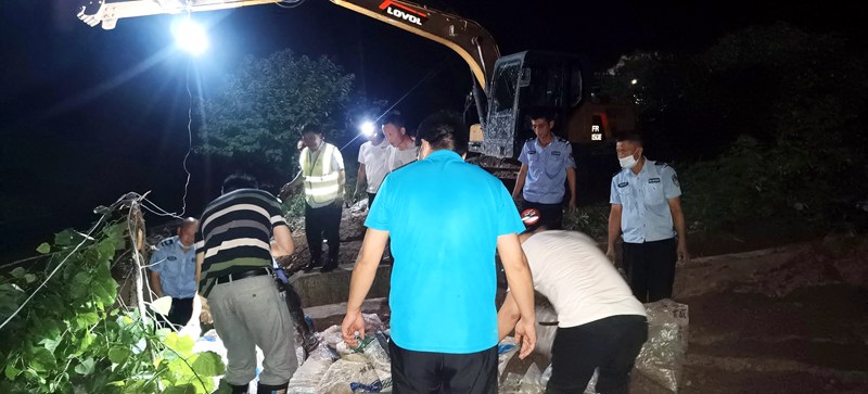 凌晨三点钟左右,在兰溪陶瓷产业园进行巡堤排查时,巡堤人员发现有三处散浸,立即上报险情。文旅局和镇村防汛抢险突击队员紧急行动,联合作战,灌沙包,运石子,填埋碎石渣土,大家硬是用自己的双手把沙石从十几米远的地方提、驮、传送到散浸点,牢牢围住,层层压实,直到水利技术人员确认合格。经过两个小时的奋战,险情终于得到了有效控制。