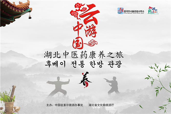 湖北省是全国重要的生态功能区,是药圣李时珍的故里,也是武当功夫和禅宗养生文化的发源地,是国内康养旅游资源最丰富的地区之一。湖北中医中药、针灸、气功疗法、中医理疗、疗养康复、膳食养生等中医文化与旅游融合,形成众多大健康旅游品牌。在后疫情时代,中国驻首尔旅游办事处携手湖北省文化和旅游厅共同推出“云游中国”湖北中医药康养之旅图片展,将精心挑选的六条康养旅游线路分享给韩国民众。