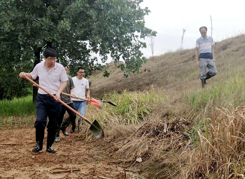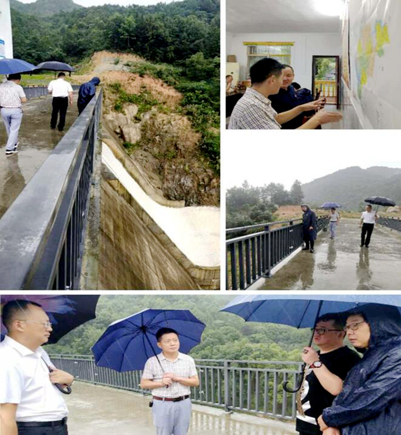 (7月6日,党委书记何格非、副局长张修志局长、工会主任杨先锋一行冒雨赴三角山等高危地点现场巡查灾情险情情况,指导防汛救灾工作。)