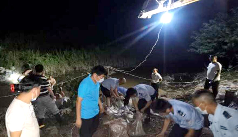 7月6日中午,白洋河水库坝坡突发大面积散侵和左坝肩脱坡险情。县委、县政府第一时间开展紧急除险工作。当晚,文旅系统蔡源、祝铭、张斯林3名同志接命令参与白洋河水库紧急抢险,同500余名民兵预备役、党员群众连夜奋战圆满除险。