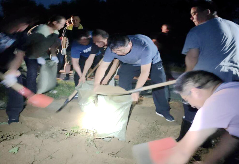 7月10日晚,我县防汛形势发生变化,根据全县防汛工作部署安排,党委书记何格非同志在兰溪分指挥部开完全县防汛救灾工作紧急视频会后立即带领值守在花鼓石村的徐良、周猷两名同志迅速转战金沙滩,同时,文旅局局长王惠斌同志又火速集结15名防汛突击队员于晚上10点出发赶赴金沙滩村江堤增援,当晚凌晨三点,文旅局责任区附近陶瓷企业内出现管涌,王惠斌局长立即带领文旅局突击队员参与抢险,至早晨五点成功排除险情。