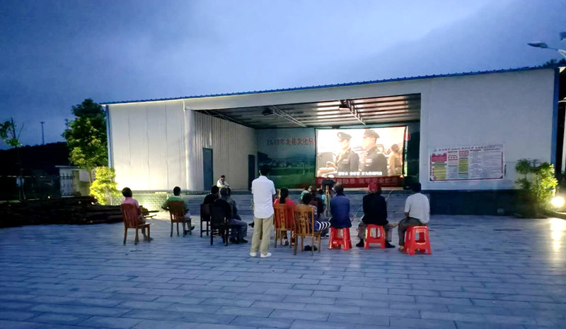 “这个电影真好看。没有想到在这里还能看到电影,这电影啊,真的送到咱老百姓的心坎上。”87岁的袁春山乐呵呵的坐在大河镇天门小学广场边看电影边和村值守的干部说。