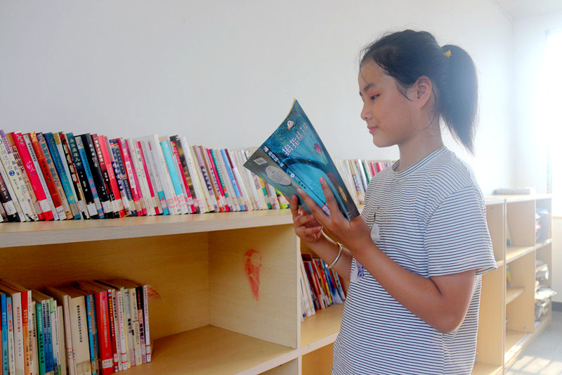 大河镇永安村党员群众服务中心是栗子园村临时转移安置点,今年12岁的戢婵丹每天都和安置点的4个小伙伴在“农家书屋”看书。