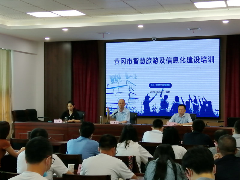 7月28日上午,由市文旅局、大别山旅游公司主办的全市智慧文旅建设暨“与爱同行·惠游湖北”活动培训班在黄州举行。市文旅局党组书记、局长王建学,党组成员、副局长王萍,大别山旅游公司总经理刘明出席培训活动并讲话。市文旅局、大别山旅游公司相关科室负责人、各县(市、区)文旅局分管负责同志、相关股室负责人、部分旅游景区和旅行社负责人参加培训。