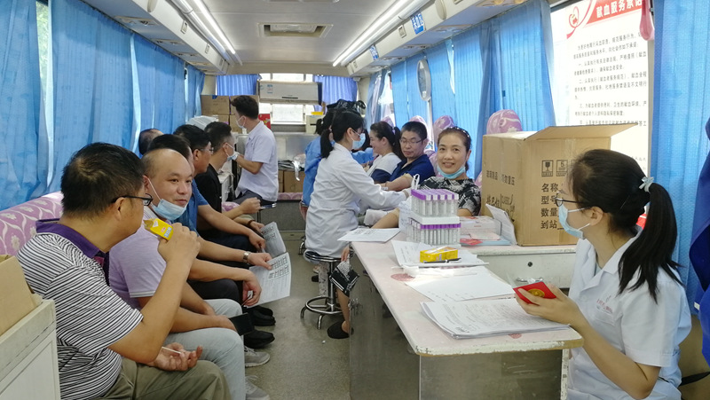 8月7日上午,市文化中心大厅排起了长队,市直文旅系统干部职工无偿献血活动正在火热进行中。队伍中有人问:“郑书记又来了?”省黄梅戏剧院党委副书记郑斌一边伸出手臂一边回答:“无论是抗疫、防汛,还是无偿献血公益活动,我们文旅干部职工都是积极作为,敢于担当的,绝不拖后腿、掉链子”。话音刚落,现场笑声一片。据不完全统计,截止上午11点,31名干部职工无偿献血10000余毫升。其中,黄冈保利大剧院管理有限公司的丁白胜、姚昊同志加入中国造血干细胞捐献者库。