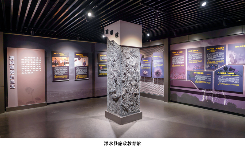 浠水县廉政教育馆展厅面积150 平方米,展线长118米,整个展陈由五个部分组成。第一部分是《领袖强音论清廉》,第二部分是《清廉源流汇浠河》,第三部分是《清风强劲扫浊流》,第四部分是《清风劲吹永不停》,第五部分是《互动体验厅》。《互动体验厅》以电子演示场景复原的形式展示,有“警钟长鸣”、“走向深渊”、“模拟牢房”、“廉政承诺签名”等四项互动体验。