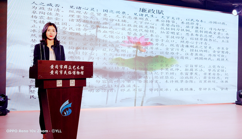 接着,群艺馆业务干部谢艳的一篇配乐朗诵《廉政賦》,以文言叙述的方式带领着大家一起回顾从古至今的廉政典范,他们立党为公,执政为民;俭以养德,廉以修身;一身正气,两袖清风的精神永远值得我们赞颂和学习。