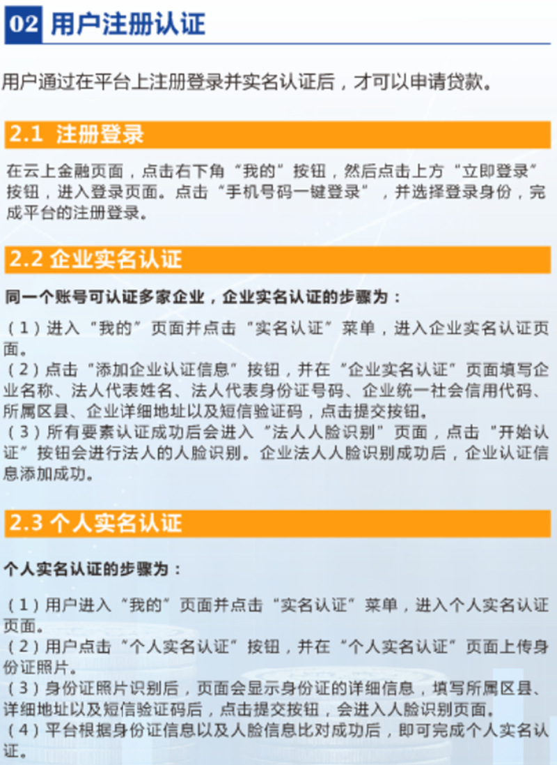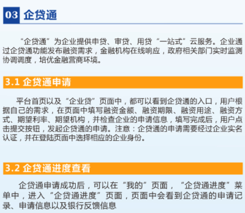 企业可通过平台发布融资需求,金融机构在线响应,实现银企适时对接。金融机构通过平台发布差异化产品和多样化服务信息,为企业及个人提供更多的选择。政府可通过平台发布支持政策及重点产业企业名录,在线监测与调度金融服务。