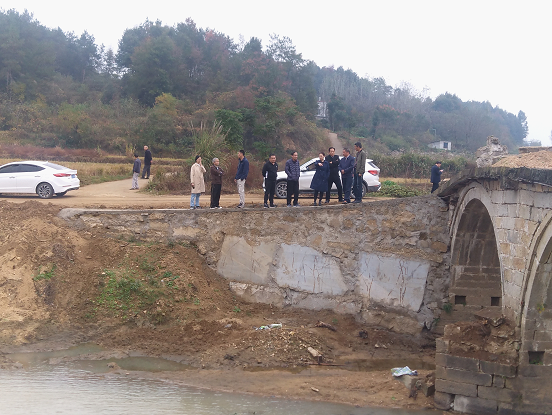 检查组一行先察看了汛期中受损的蔡河镇县级文物保护单位闵家新桥和一般文物点邓和坪桥,查看受损情况,提出了具体的保护意见。 随后,赶赴正在施工的省级文物保护程氏祠堂,现场调研修缮维护相关工作。