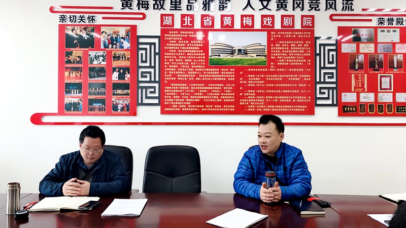 3月17日上午,湖北省黄梅戏剧院院长、第十三届全国人大代表张辉在省黄梅戏剧院传达2021年全国“两会”精神。会议由剧院党委书记彭学文主持。