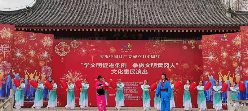 “文明城市文明的花,文明创建靠大家……”“文明在哪里,我来告诉你……3月12日,市赤壁公园广场歌声悠扬,舞姿翩翩,庆祝中国共产党成立100周年“学文明促进条例 争做文明黄冈人”文化惠民演出活动在此举行。