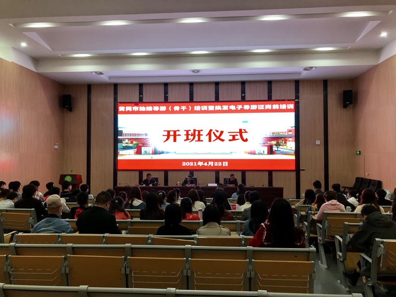 4月22日至23日,黄冈市2021年全市地接导游(骨干)培训暨换发电子导游证岗前培训在黄冈职业技术学院举行。此次培训共有地接骨干导游、2020年新取得导游资格证和其他未换发电子导游证的110余人参加。主要以理论学习、现场讲解、交流互动和实地踩线的方式展开。