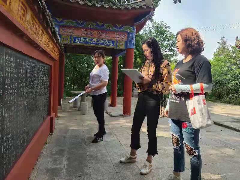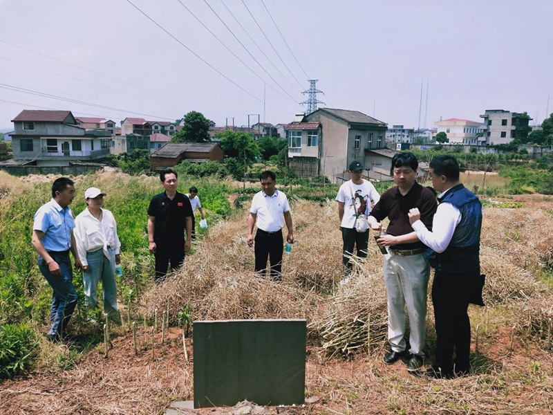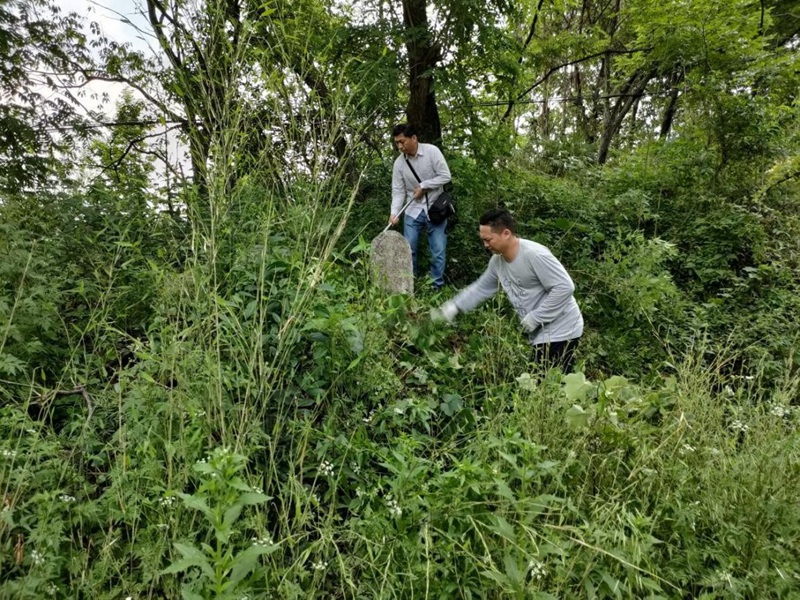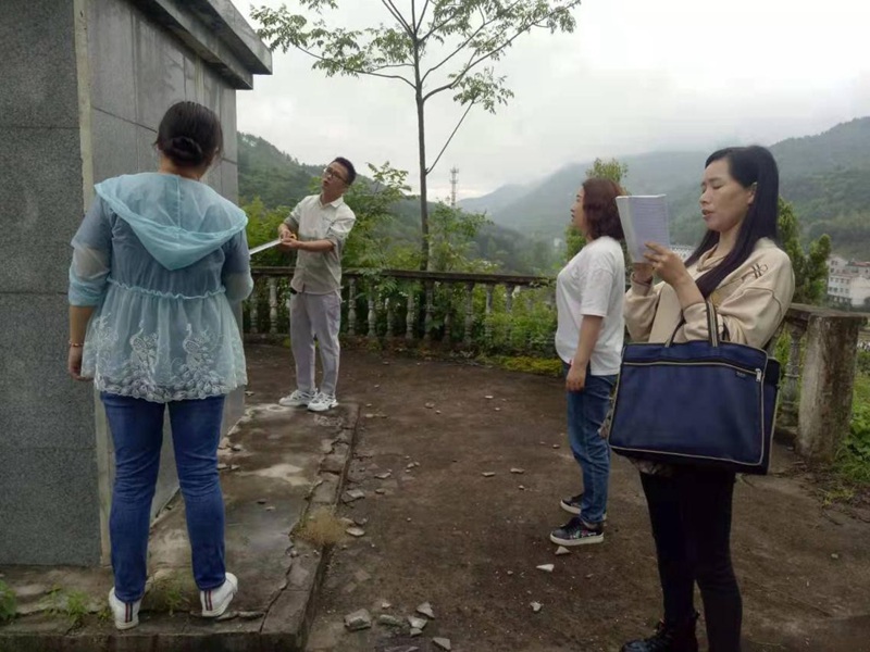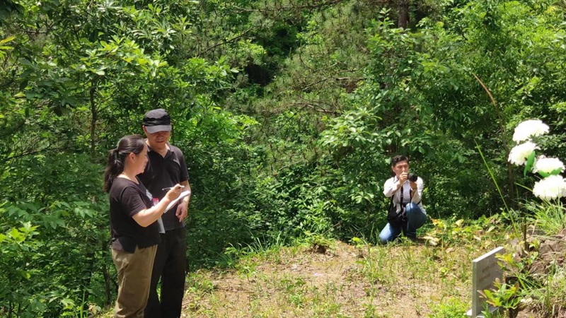 省市县专班人员顶着烈日在蕲春县詹大悲墓采集文物数据