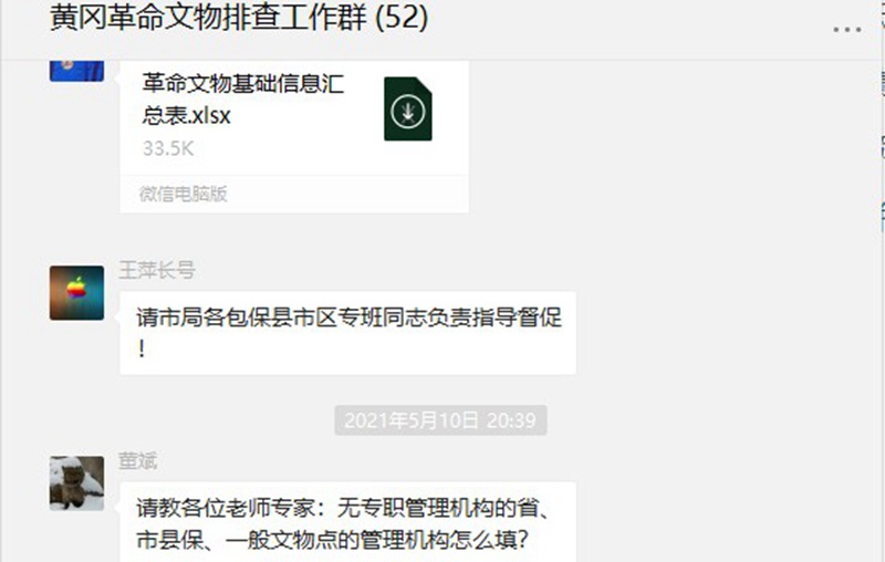 建立排查微信工作群,对文物排查技术问题进行讨论