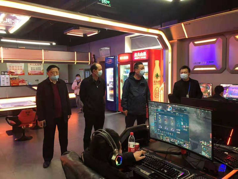 2月14日,黄冈市文化和旅游局党组书记、局长王建学带队专项督导检查黄冈市区网吧行业疫情防控、安全生产、市场秩序等情况。市文化市场综合执法支队支队长李新元、副支队长李四平及相关执法人员参加检查。