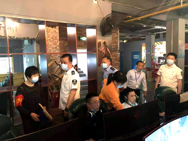5月12日下午,市公安局网安支队、市文旅局文化市场综合执法支队、市卫健委卫生健康综合执法支队组成的联合检查组,深入黄州城区网络文化市场进行实地检查。检查组一行分别对黄州城区 6家网进行专项检查。执法人员重点对网吧证照是否齐全并悬挂明显位置、是否有未成年人禁入标志及12318举报电话、是否对上网人员身份信息进行登记、是否配备文明劝导员、是否落实场内巡查制度、是否加强禁烟管理等情况进行检查,并要求切实履行好创卫主体职责。