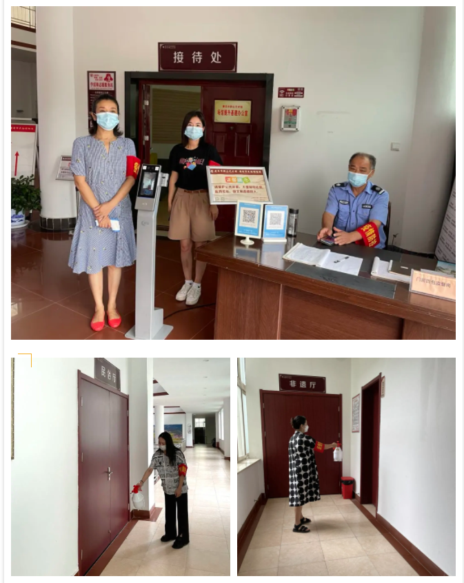 做好讲解员。党员、干部职工在办公大楼轮班值守,协助安保对进出人员进行测量体温和查验健康码、行程卡;每天对办公大楼进行两次消杀,一楼大厅多次消杀,老馆派有专人进行消杀。