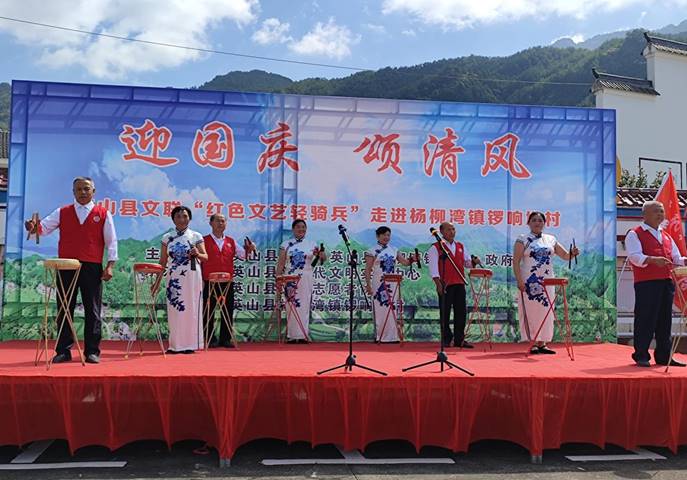11个乡镇国庆期间文化活动也百花齐放。9月30日县文联红色文艺轻骑兵走杨柳镇进锣响坳村,联合该村举办了“迎国庆颂清风”廉政文艺作品展演,营造“清廉英山共建共享”的深厚氛围。